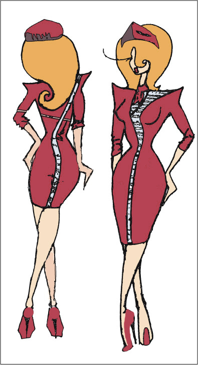 I was inspired by the theme of 80’s poster girl from Virgin’s advertisement but on the day of the crit, I was told my designs were ‘pornographic’ (this is due to the way I draw the female form…and the fact that I wanted to use latex material.) so I thought fine, I’ll go with that.