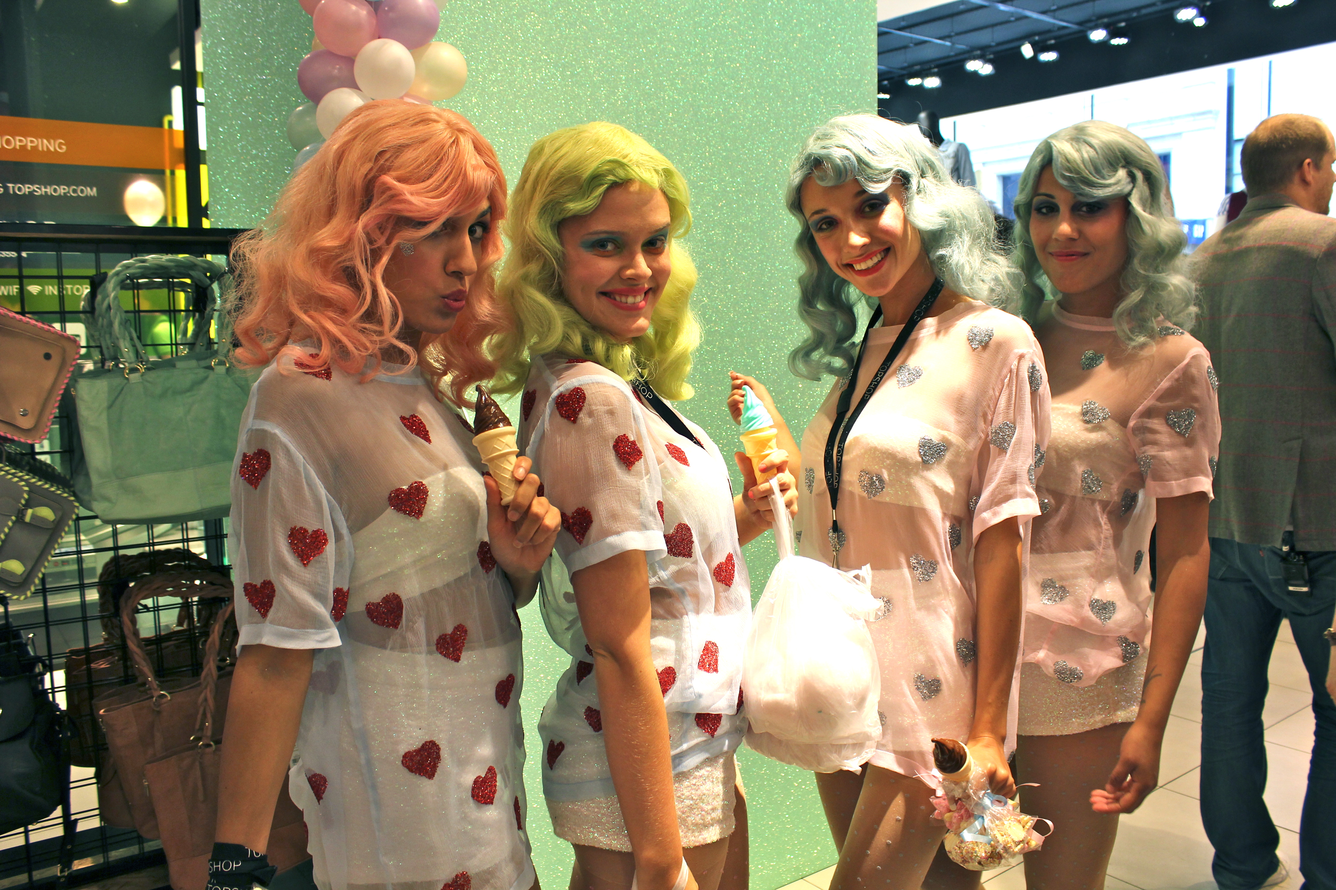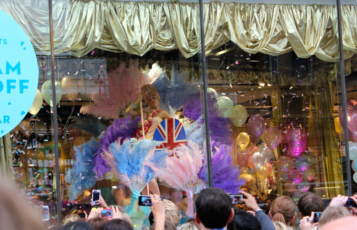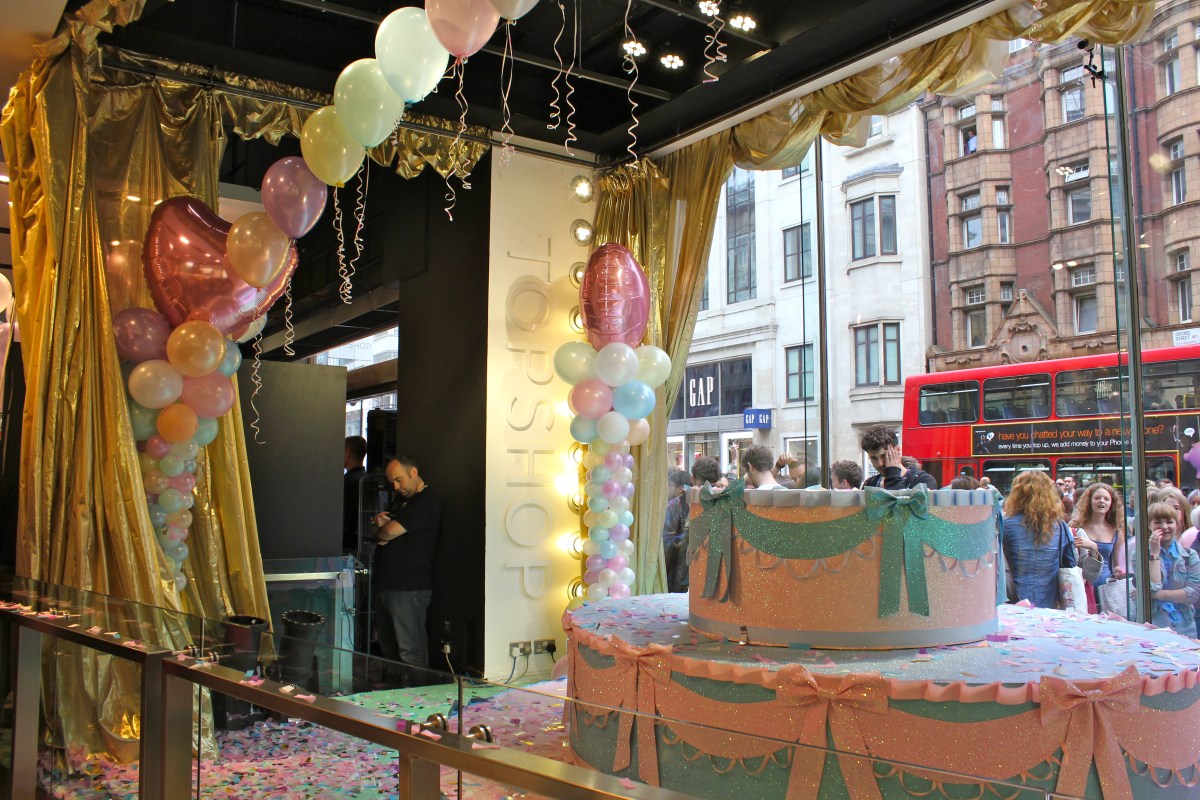 anywho, as the crowd were building up outside Topshop, we were all excited to see what was behind the gold lamé curtain, they revealed it to be…