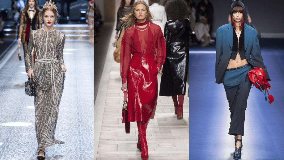What better valiant material to use than chain mail for a protest collection; such things which have only ever been used in armour, this time with a glittering twist from Gucci with silver mesh bodysuits, draped and embellished at Versace with added crystals while Dolce & Gabbana took on light-weight and floaty feminine long mesh gowns.