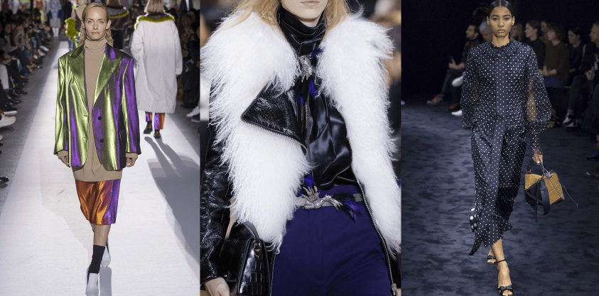 It began to make itself felt in Milan, but flashes of metallic tailoring are proliferating in Paris – most notably at Dries Van Noten. The designer’s 100th show was a riot of colour with numerous archive prints overlaid with new graphics, each prompting a Proust Madeleine moment that meant one almost missed the metallic oil-slick oversized jackets. Elsewhere at Lemaire, languid silver trousers squeezed their way into a collection largely filled with washed out blues and pinks, slipping in at the end to electrify a standard issue blue buttoned dress. And at Koché? Metallic blue short suits brought a new grown-up feel to Christelle Kocher’s signature street-beat aesthetic. Time to switch up your all-black tailoring template, and sub in metallics with your neutrals.
