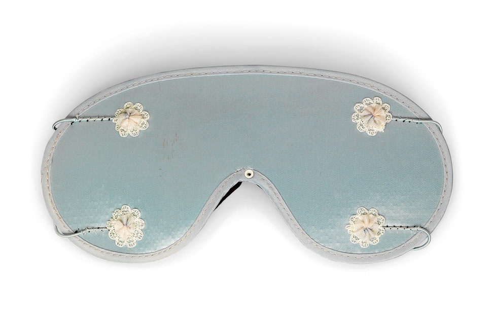 SLEEP SHADE CO. sleep mask, circa 1960 The blue satin shade applied with pink and blue lace-trimmed flowers, marked SLEEP SHADE CO., 282 MISSION ST, SAN FRANCISCO, CAL £100 – £150